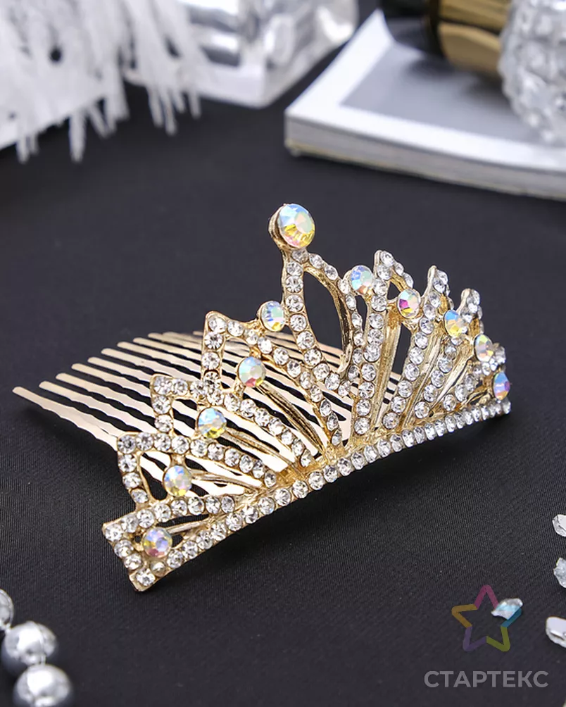 Диадема для волос "Королевская особа" 3,8*7,5 см веер золотистого цвета