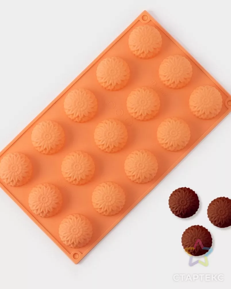 Форма для конфет и шоколада «Цветы. Хризантема», силикон, 29×17×2 см, 15 ячеек, цвет оранжевый оранжевого цвета