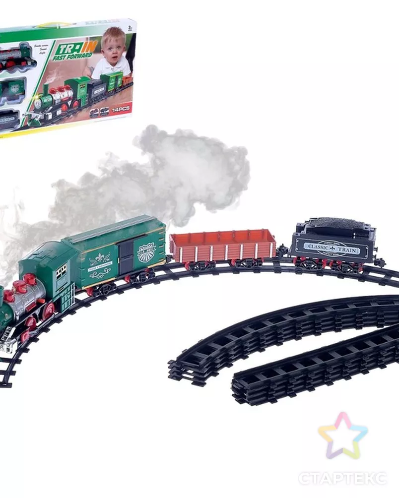 Железная дорога «Классик», со световыми, звуковыми и дымовыми эффектами, протяжённость пути 2,88 м разноцветный